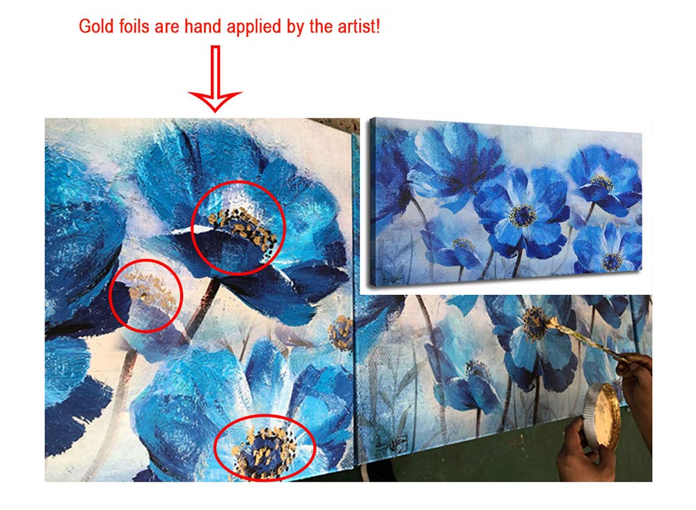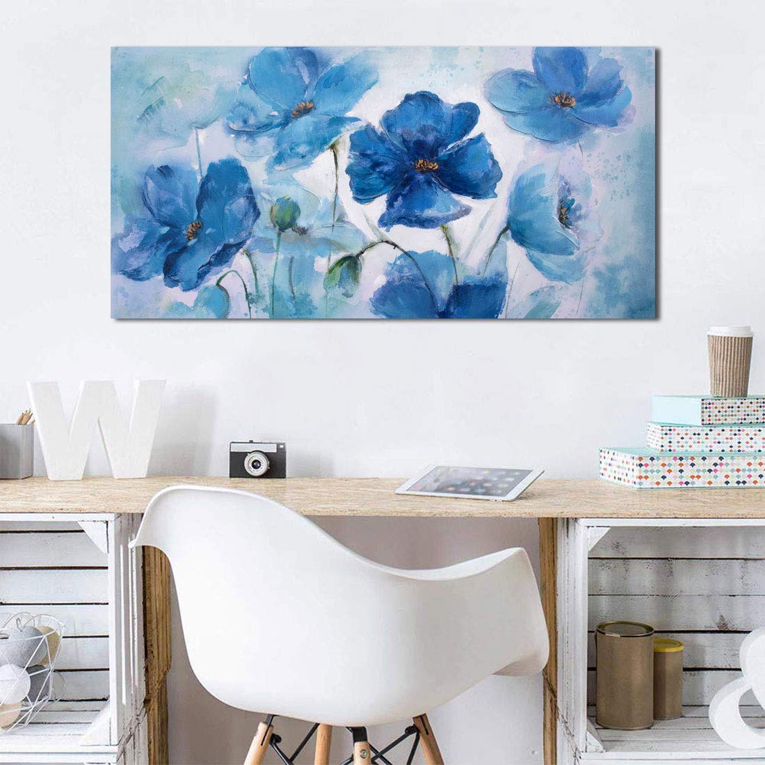 Amazon Com Ardemy Blue Flowers Canvas Wall Art Bloosm Painting Modern Poppy Florals Picture Framed Ready To Hang For Bathroom Living Room Bedroom Dinning Room Home Office Wall Decor 40 X20 Large Size